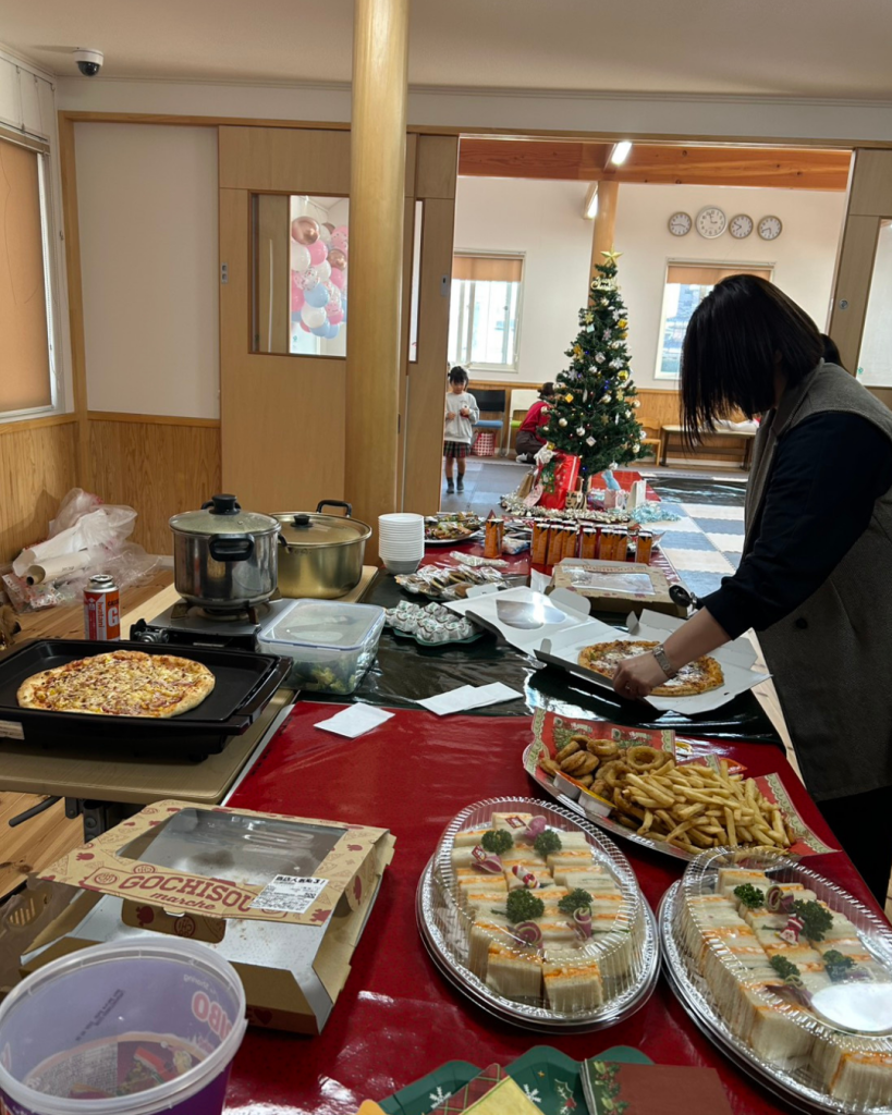 生徒のお祖母様からの愛情たっぷりのクリームシチュー、ご父兄の皆さまがご準備くださった数々のお食事やおやつ、そして大いに盛り上がったビンゴ大会やプレゼント交換。どの場面にも笑顔と優しさが溢れていました。
